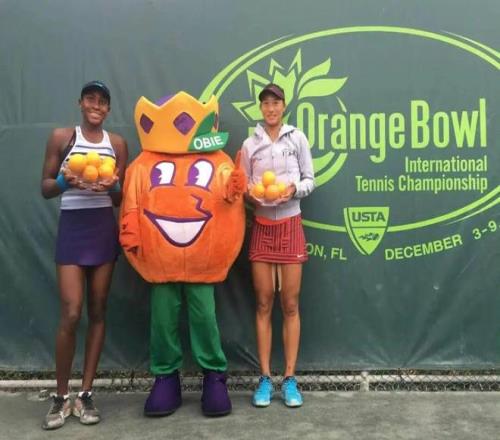 她完全有理由開心,因為“橘子碗”是國際青少年網壇的殿堂級賽事。賽事起源于1947年,冠軍名單堪稱一部網球名人錄。羅杰·費德勒、比約·博格、約翰·麥肯羅、安迪·羅迪克,以及克里斯·埃弗特、卡羅琳·沃茲尼亞奇、可可·高芙、比安卡·安德萊斯庫等名將,都曾在他們的青少年時期在此奪冠。